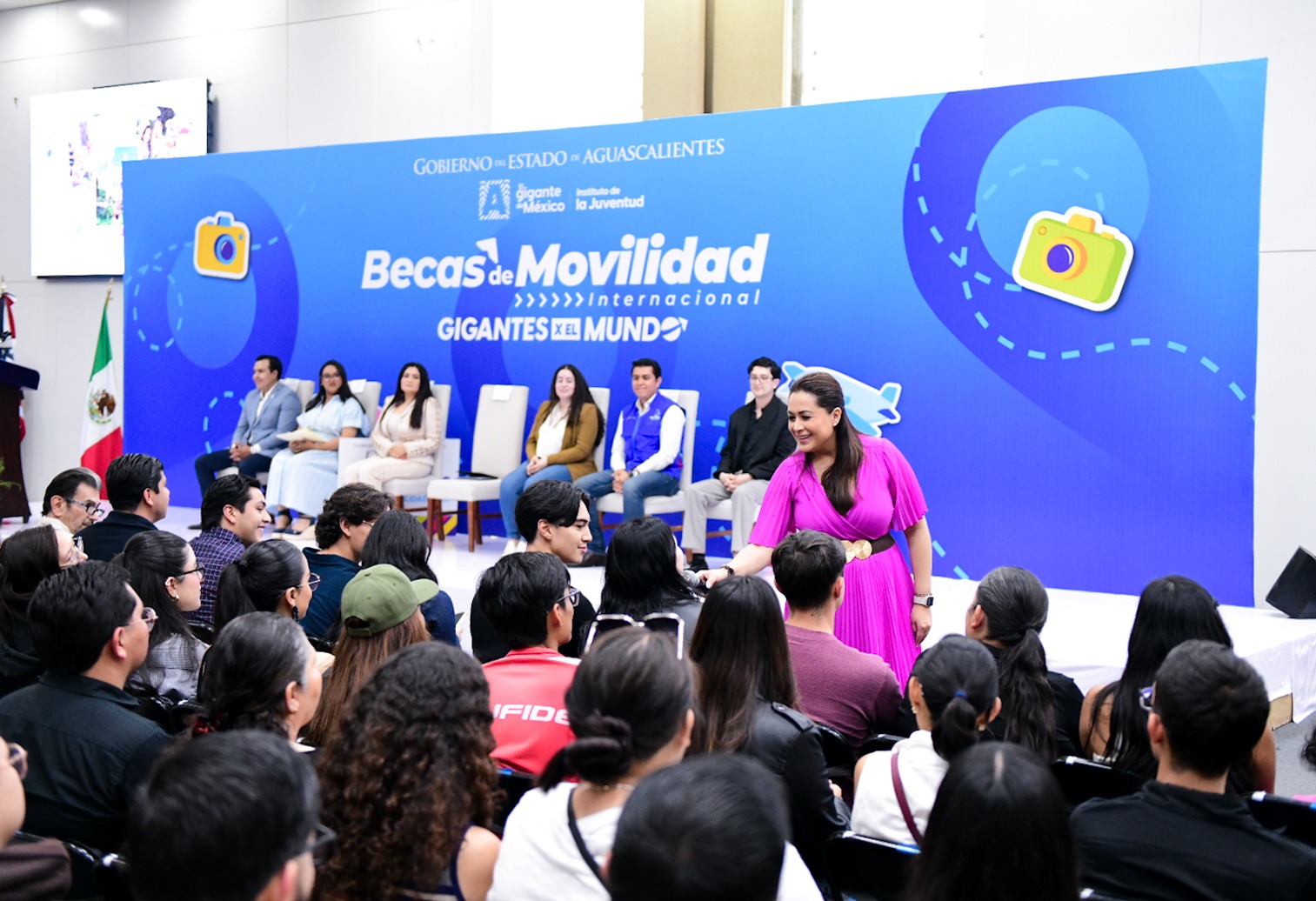 La gobernadora de Aguascalientes, Tere Jiménez, entregó 500 becas de movilidad internacional del programa “Gigantes por el Mundo”, una iniciativa que abre las puertas para que las y los jóvenes cumplan el sueño de viajar al extranjero y elegir entre más de 83 países de Europa, Asia, Medio Oriente, América y África.