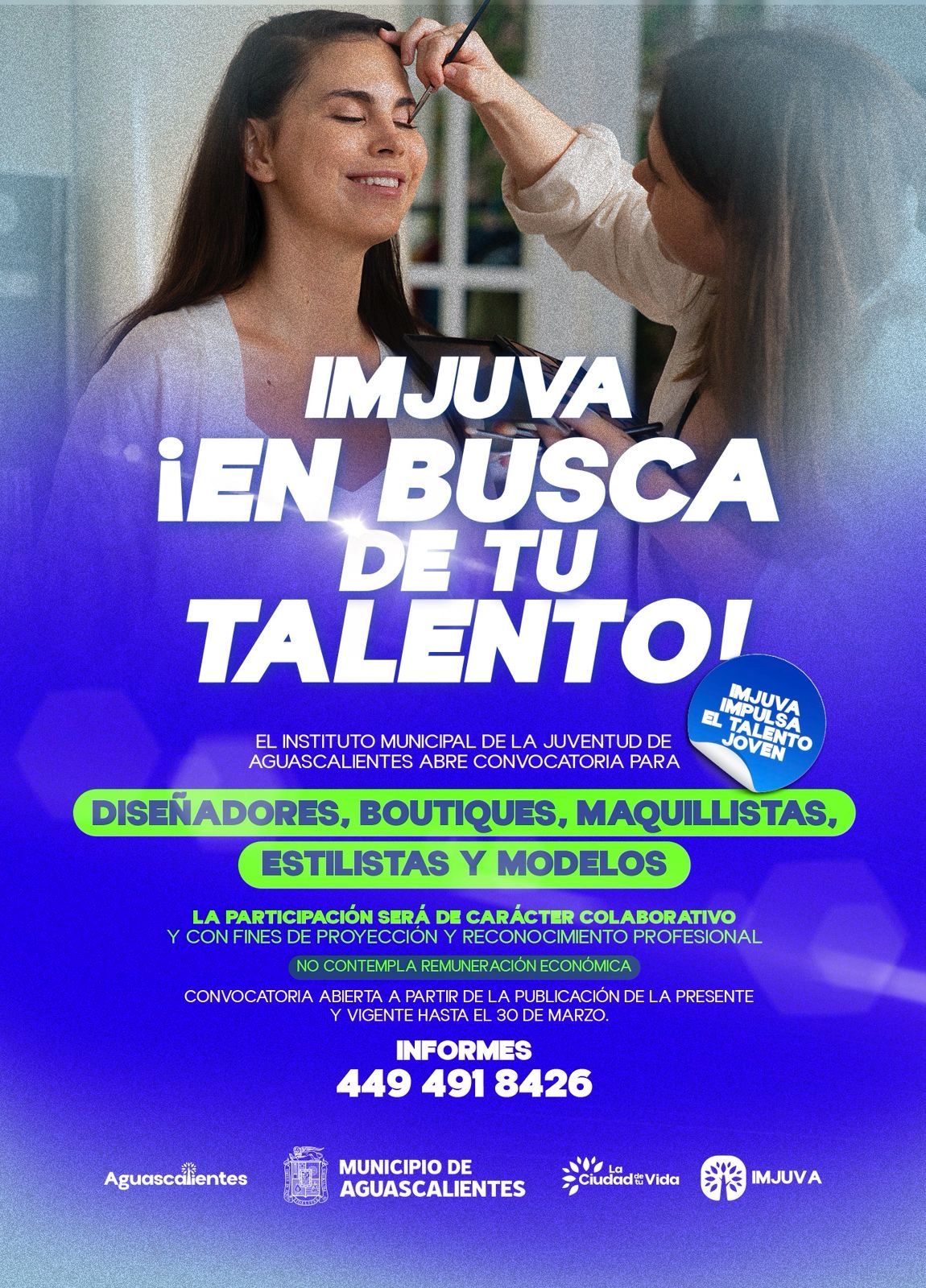 El Insituto Municipal de la Juventud de Aguascalientes (Imjuva), convoca a diseñadores, boutiques, maquillistas, estilistas y modelos interesados en participar de manera colaborativa y profesional en distintos eventos como pasarelas, exposiciones y actividades especiales organizadas por esta institución.