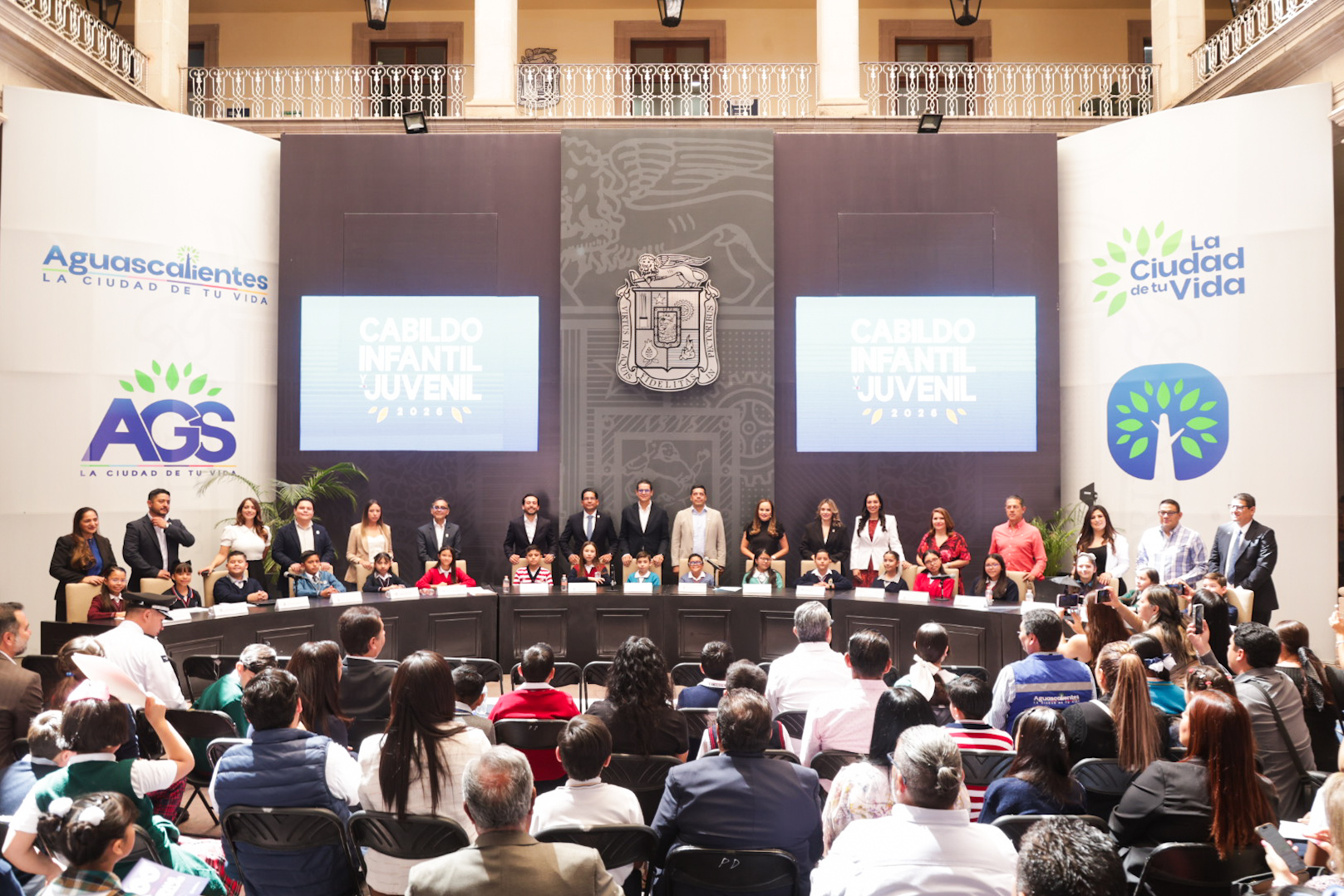 Con la instalación del Cabildo Infantil y Juvenil en su edición 2026, se le dio voz a niñas y niños de cuarto, quinto y sexto de primaria del municipio de Aguascalientes quienes expusieron diversas ideas sobre temas como ciberacoso, cambio climático e inteligencia artificial.