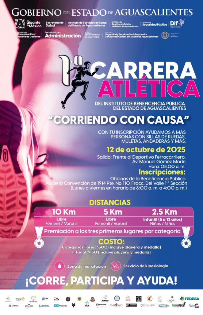 🏃‍♂️✨ ¡Súmate a la 1.ª Carrera Atlética “Corriendo con Causa” del Instituto de Beneficencia Pública de Aguascalientes!