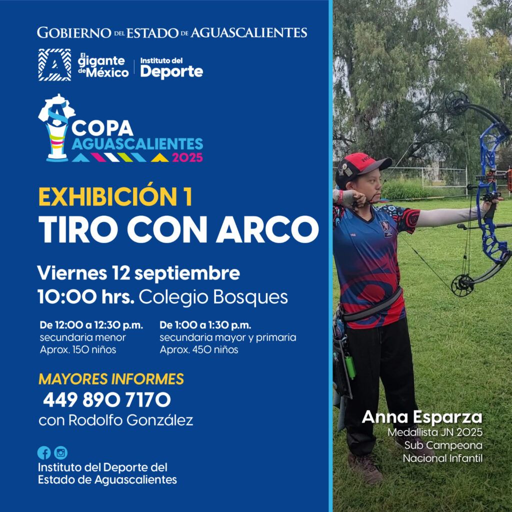 Mañana viernes 12 de septiembre te esperamos en la exhibición de tiro con arco de la Copa Aguascalientes, en punto de las 10:00 hrs en el Colegio Bosques.