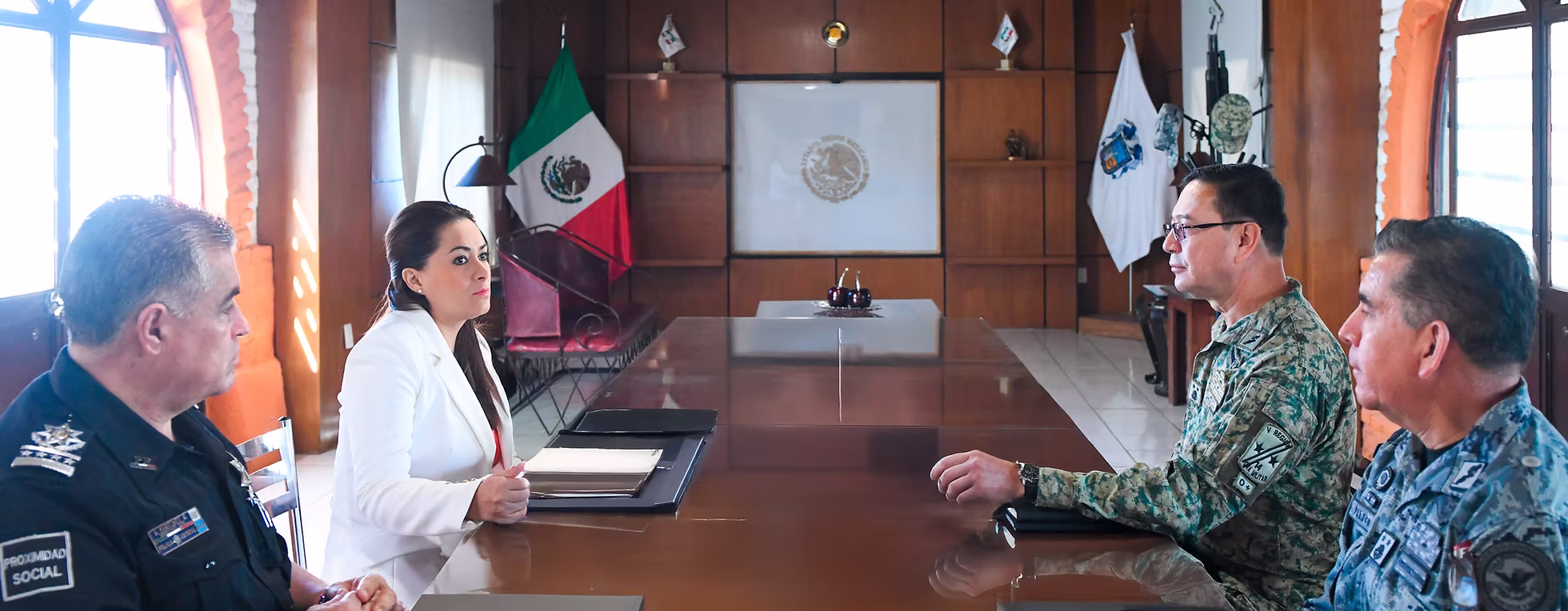 Tere Jiménez participó en una reunión de trabajo con titulares del Ejército Mexicano, Guardia Nacional y Secretaría de Seguridad Pública del Estado, en las instalaciones de la 14/a. Zona Militar.