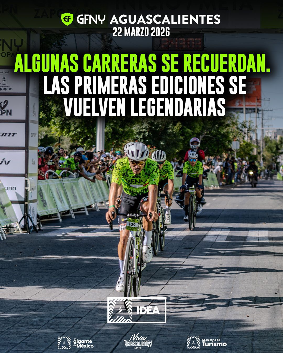 Estamos muy contentos de anunciar que Aguascalientes será sede, el próximo 22 de marzo, del evento ciclista internacional Gran Fondo Nueva York (GFNY), que reúne a más de 2 mil ciclistas de 10 países.