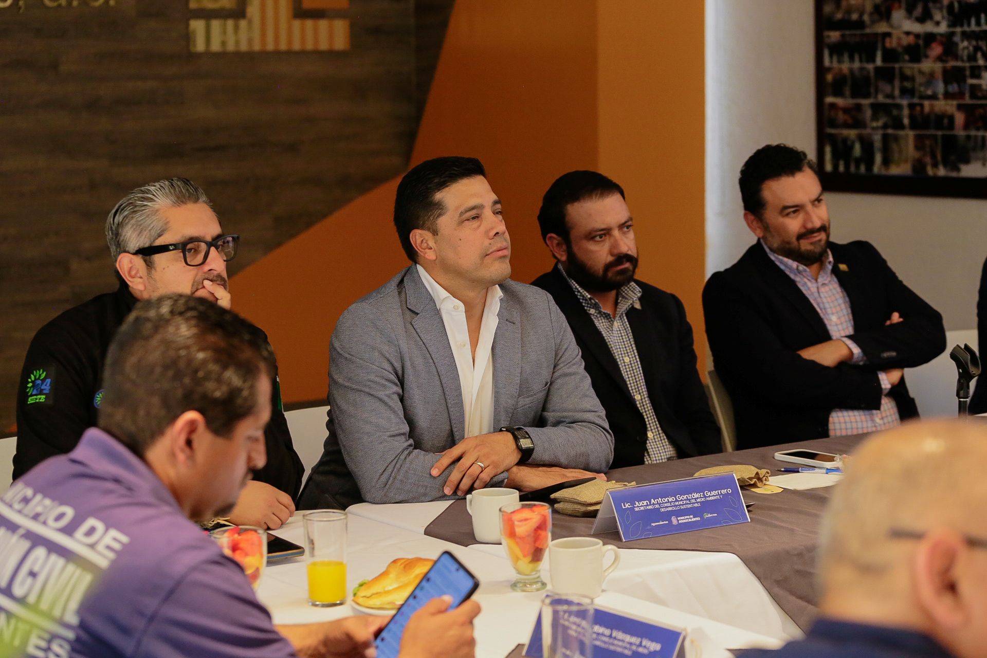 En esta sesión se contó con la participación del presidente del Colegio de Arquitectos del Estado de Aguascalientes, César Alejandro Ventura Ruiz Esparza; el regidor presidente de la Comisión de Ecología, Parques, Jardines y Panteones, Juan Antonio González Guerrero; del secretario de Servicios Públicos, Carlos España Martínez, titulares de diferentes áreas del Modelo Integral de Aguas de Aguascalientes y Protección Civil Municipal, así como consejeros integrantes de Asociaciones Civiles, colegios de profesionistas y cámaras empresariales.