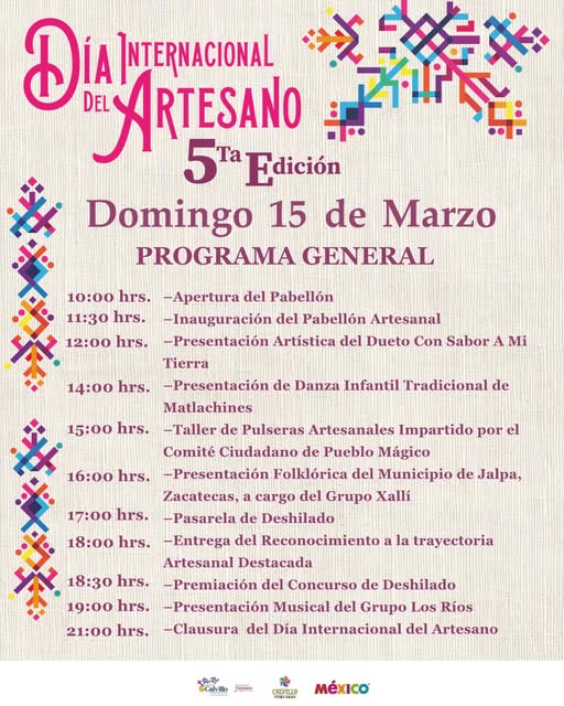 Habrá música, danza, pasarela de deshilado, talleres y reconocimiento a grandes artesanos.