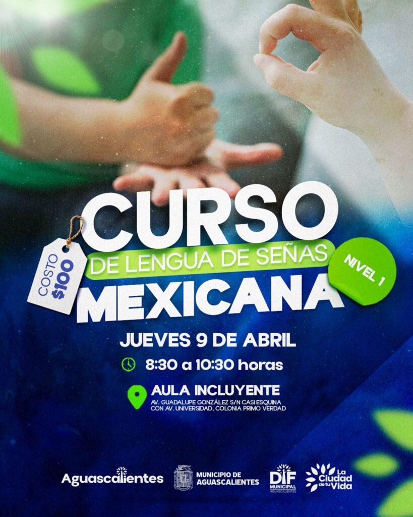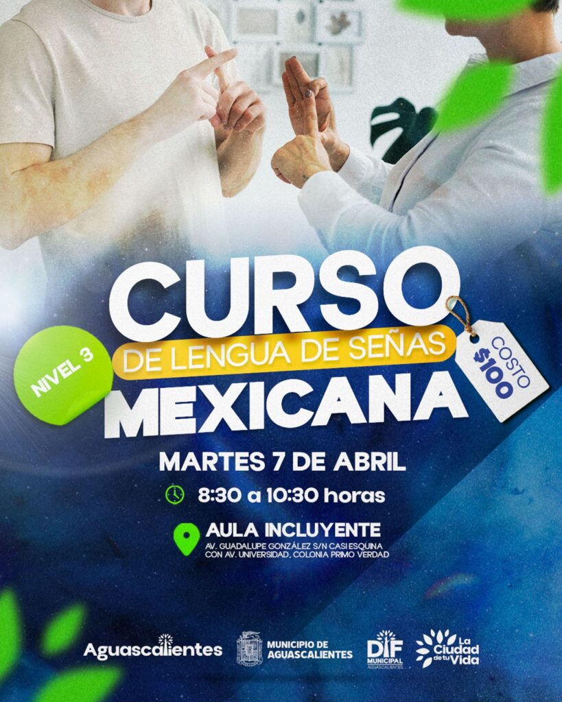 El DIF Municipal de Aguascalientes invita a la ciudadanía a participar en los cursos de Lengua de Señas Mexicana, niveles 1 y 3, como parte de las acciones permanentes para fomentar la inclusión y la accesibilidad en la comunidad.