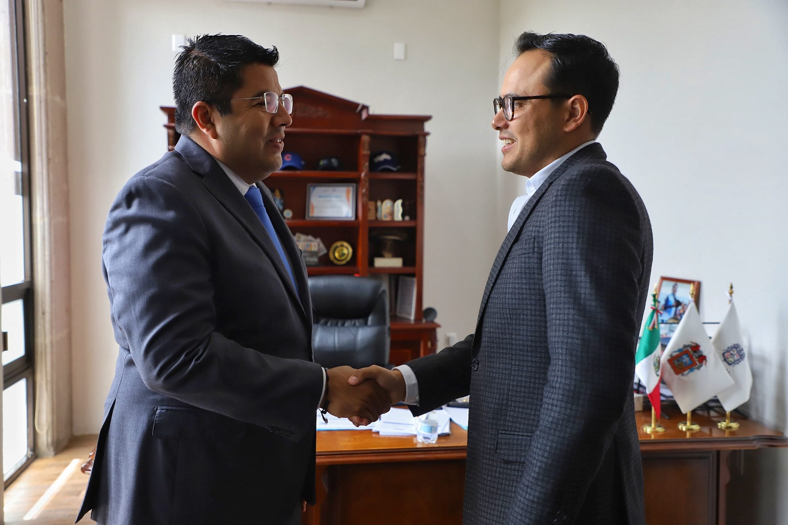 El presidente municipal de Jesús María, César Medina, sostuvo una reunión de trabajo con el delegado estatal de la Procuraduría Federal del Consumidor (PROFECO), Carlos Pliego Vargas.