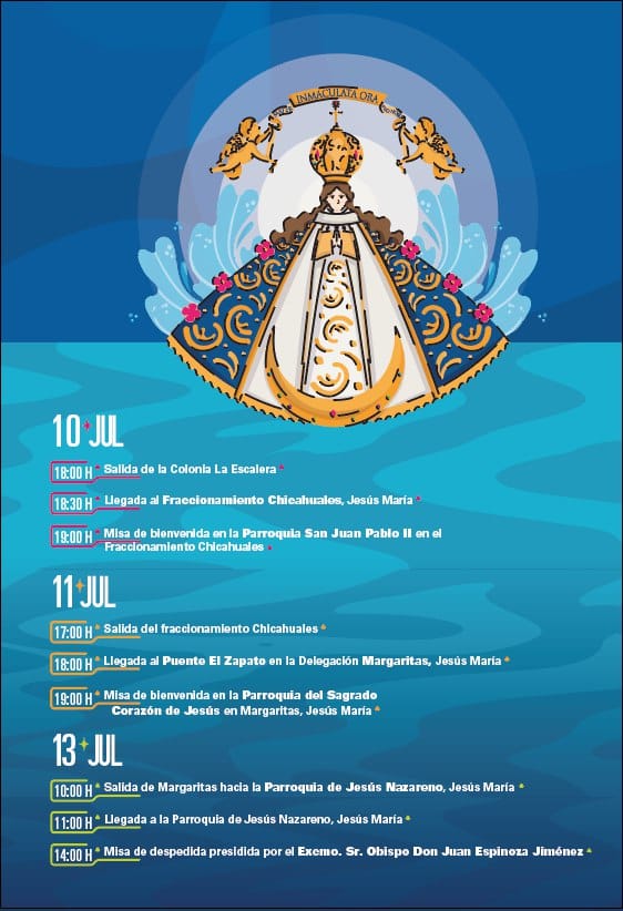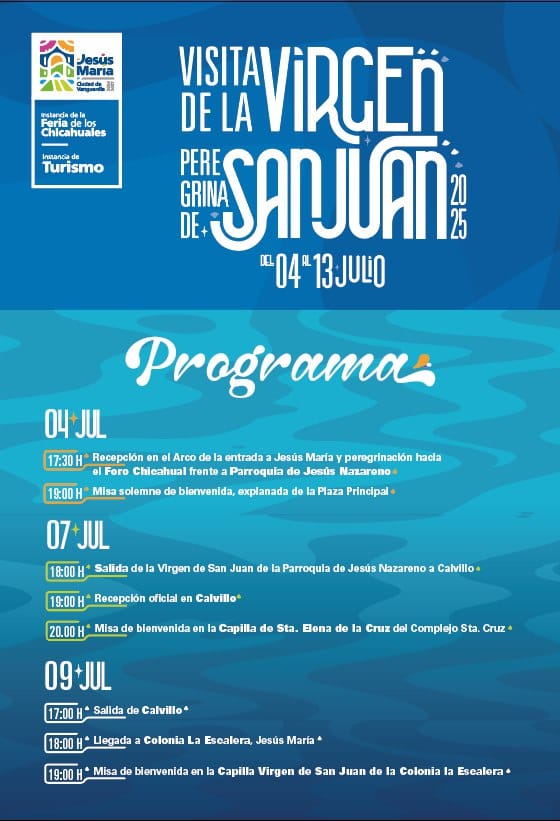 Este 4 de julio, el municipio de Jesús María dará la bienvenida a la Virgen Peregrina de San Juan de los Lagos, marcando con ello el inicio oficial de la Feria de los Chicahuales 2025, una de las tradiciones más esperadas por la comunidad.