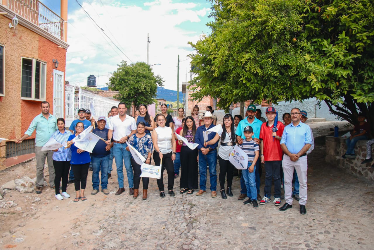 El Gobierno de Calvillo, a través de la Secretaría de Obras Públicas, realizó el arranque de obra de la construcción de guarniciones, banquetas y pavimento de concreto hidráulico en la calle Fresno de la comunidad de La Rinconada.
