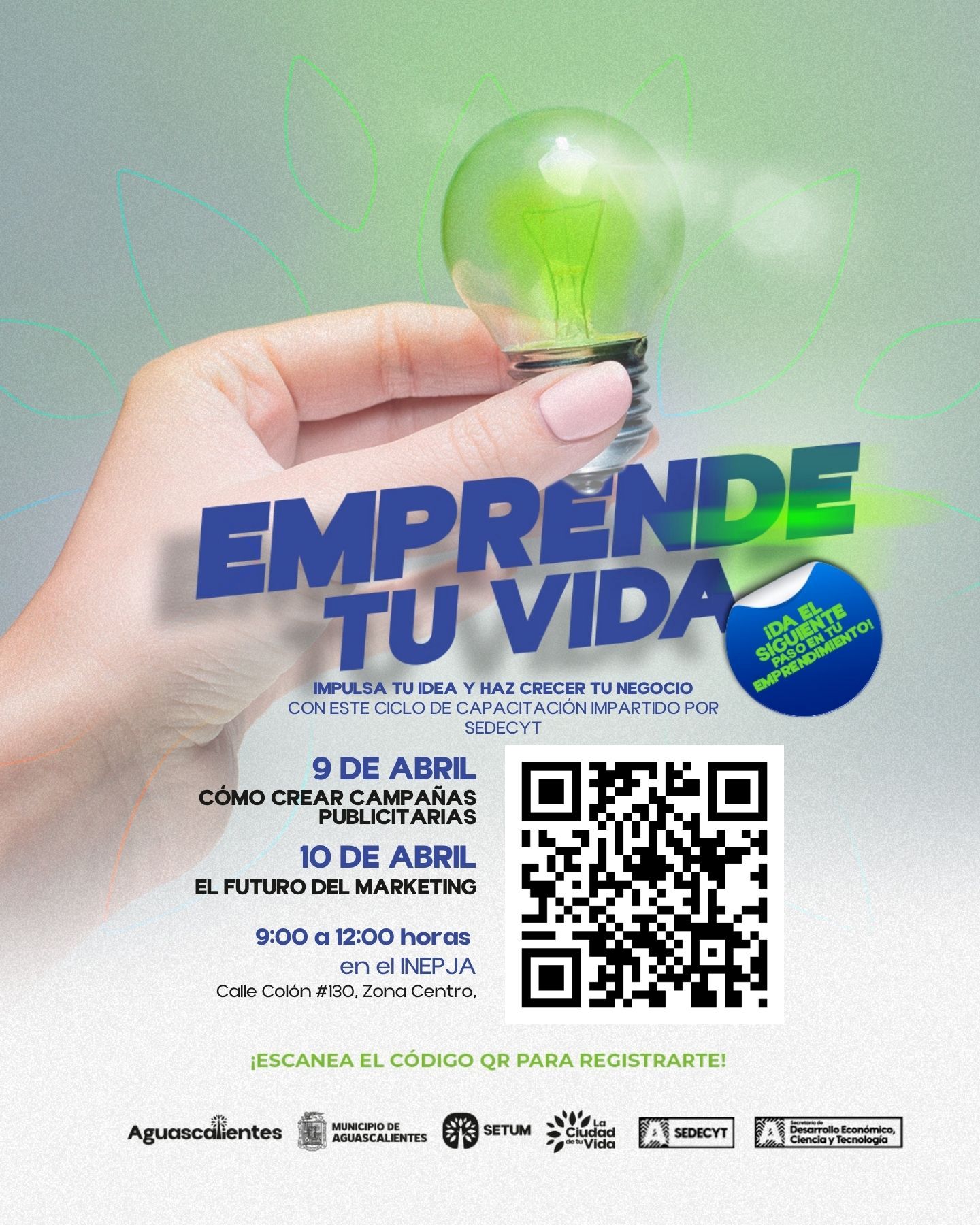Con el objetivo de fortalecer el desarrollo económico y brindar herramientas prácticas a las y los emprendedores, el Municipio de Aguascalientes, a través de la Secretaría de Economía Social y Turismo Municipal (Setum), invita a la ciudadanía a participar en el programa “Emprende tu Vida”, cuyas capacitaciones serán impartidas por la Secretaría de Desarrollo Económico, Ciencia y Tecnología (SEDECYT) los próximos 9 y 10 de abril.