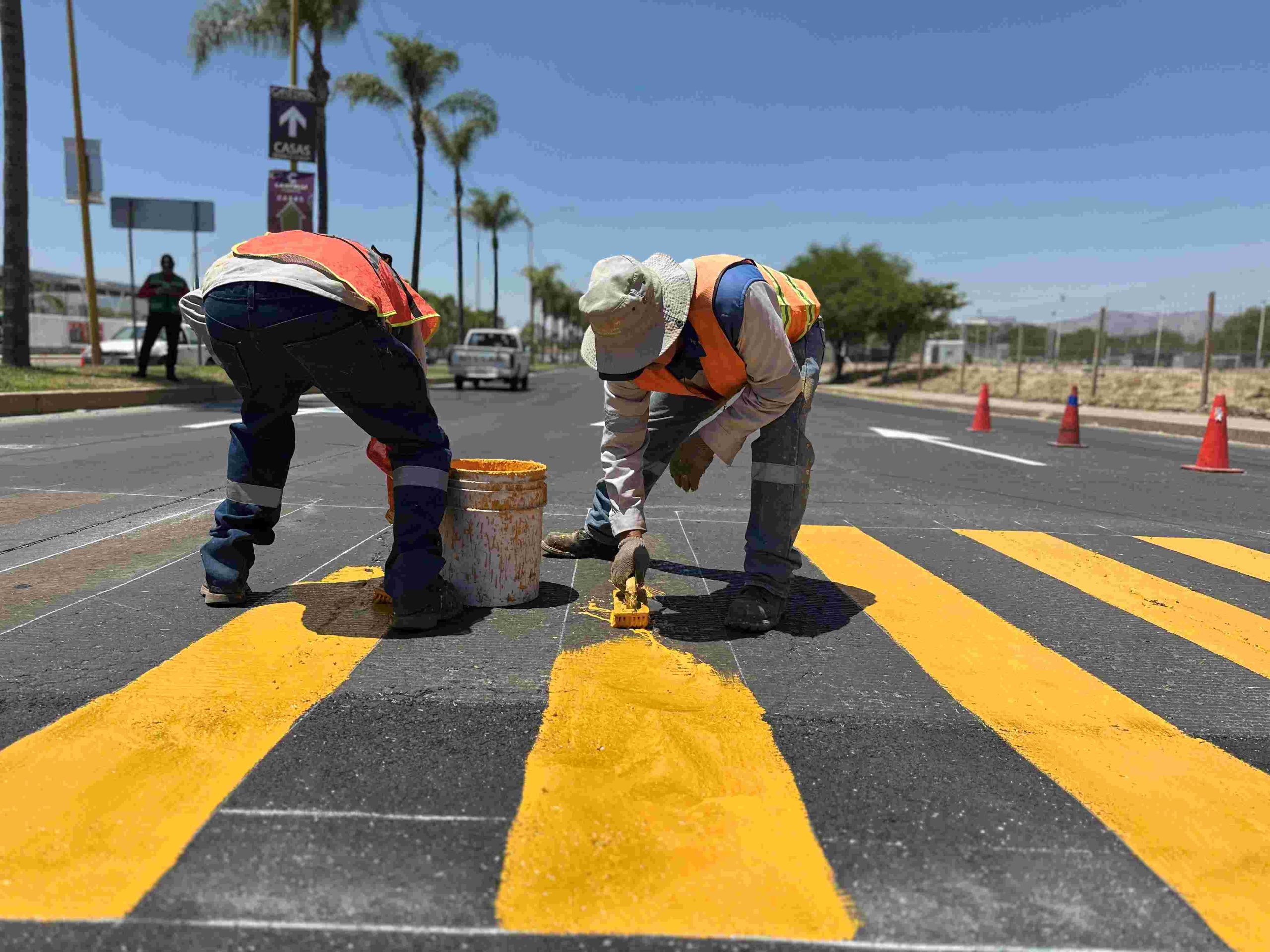 Estas acciones comprenden trabajos de bacheo, aplicación de pintura vial en cruceros y líneas de carril, construcción y rehabilitación de rampas para personas con discapacidad, así como la mejora de guarniciones y otros elementos urbanos esenciales.