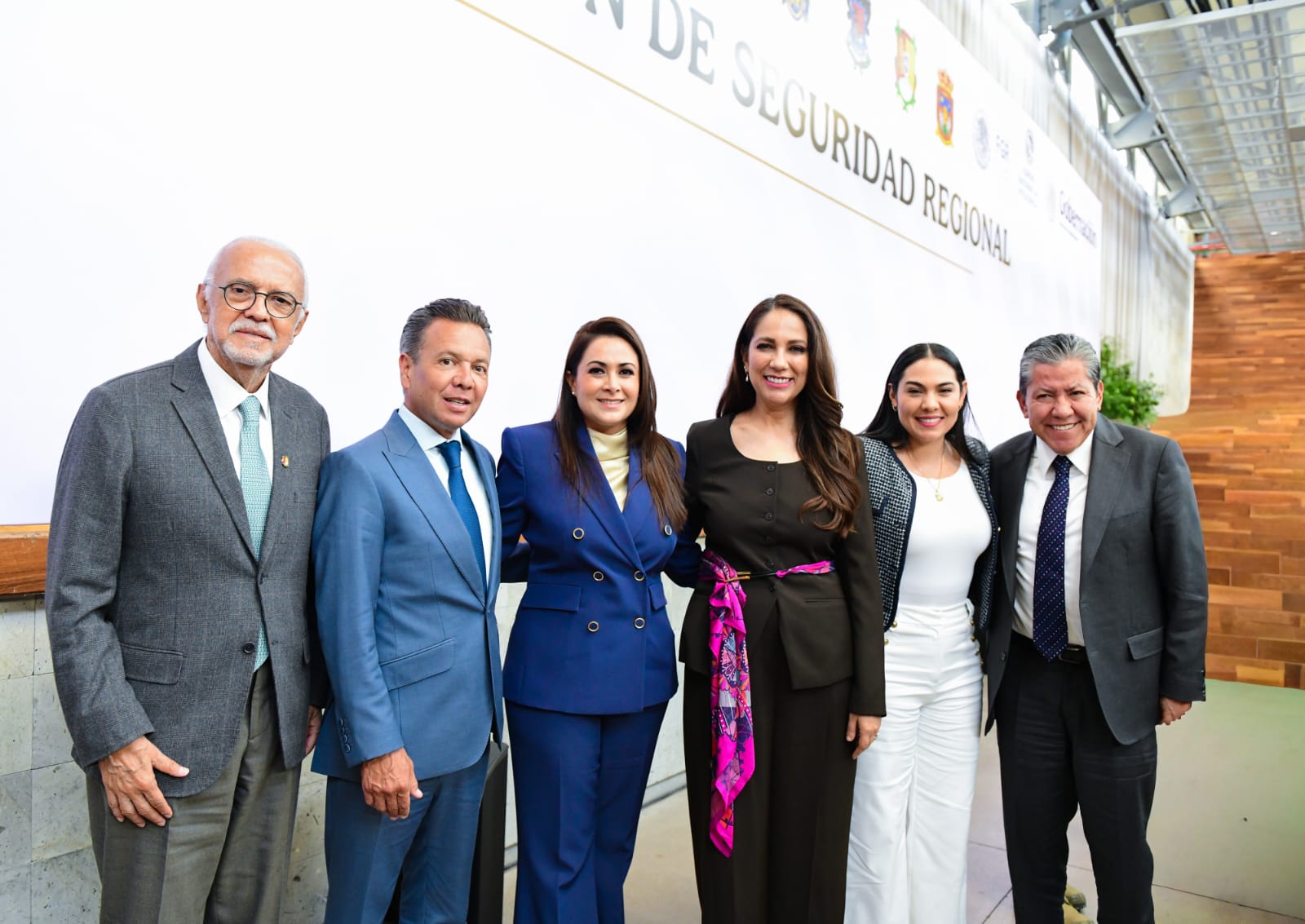 La gobernadora de Aguascalientes, Tere Jiménez, encabezó la 7.a Reunión de Seguridad Regional con sus homólogos de Colima, Indira Vizcaíno Silva; Guanajuato, Libia Denise García Muñoz Ledo; Jalisco, Jesús Pablo Lemus Navarro; Nayarit, Miguel Ángel Navarro Quintero, y Zacatecas, David Monreal Ávila.