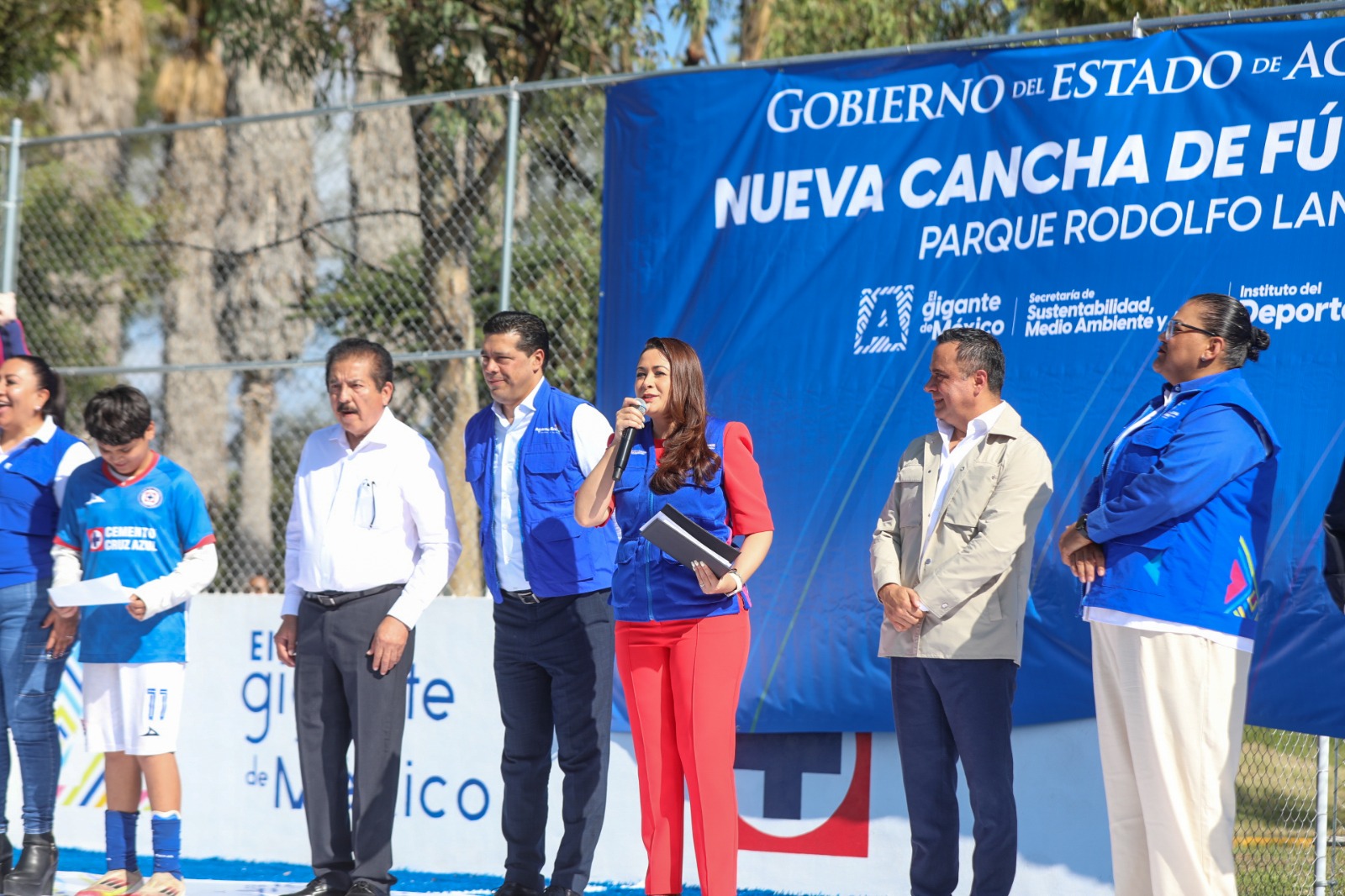 Con la firme convicción de seguir impulsando espacios para el deporte y la sana convivencia, la gobernadora de Aguascalientes, Tere Jiménez, encabezó la inauguración de la nueva cancha de futbol 7 Cementos Cruz Azul, un espacio pensado para que niñas, niños, jóvenes y familias enteras vivan la pasión del futbol en un entorno seguro, moderno y lleno de vida.